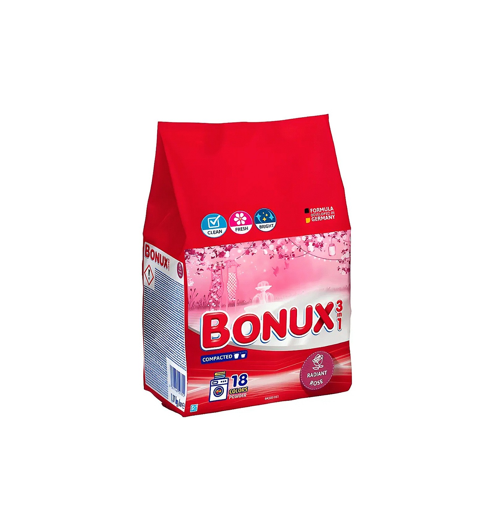 Continut: 5-15% agenti tensioactivi anioinici, sub 5% policarboxilati, agenti tensioactivi neionici, fosfonati, sapun, enzime, parfumuri.
