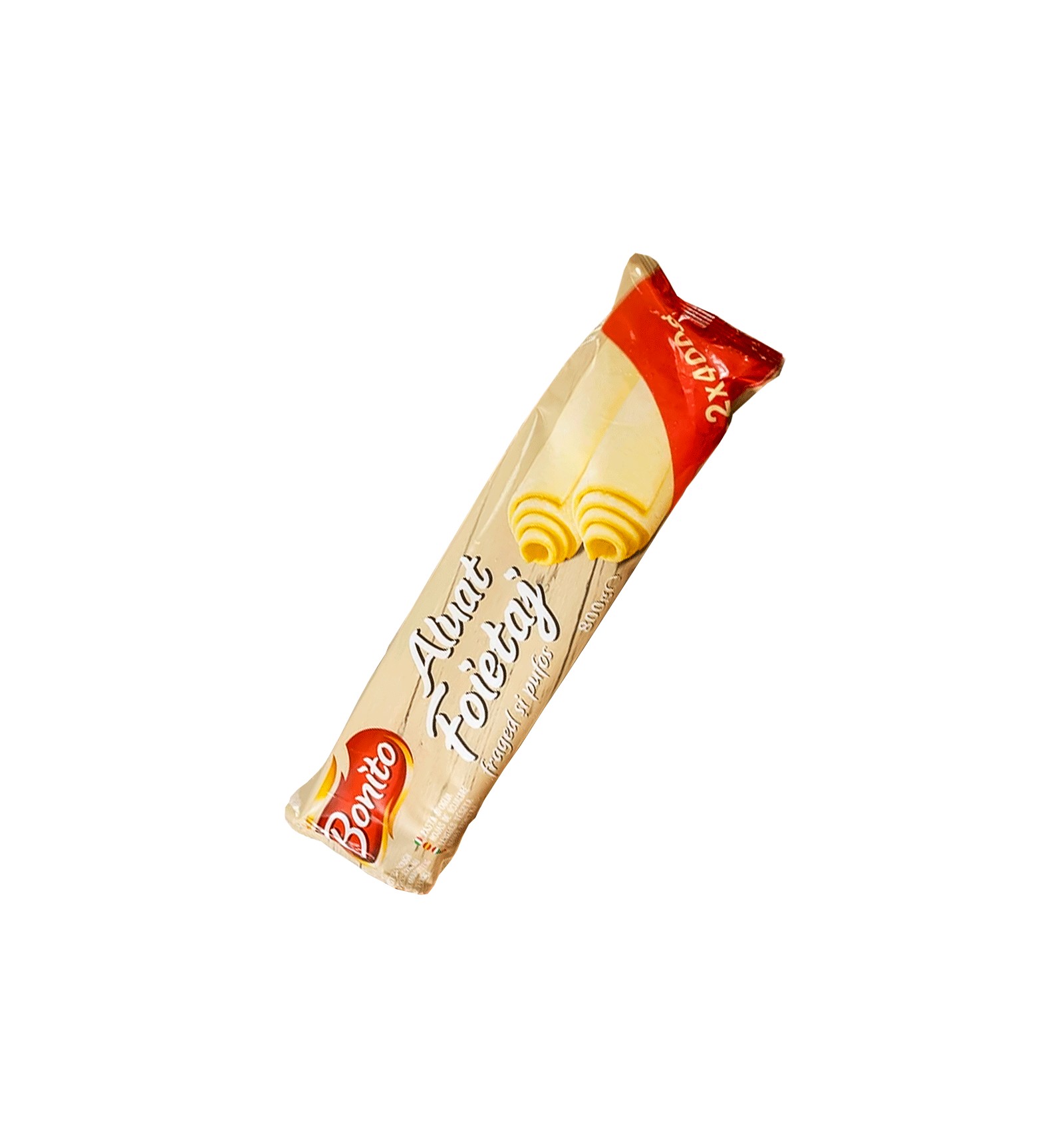 Ingrediente: faina alba de grau, margarina vegetala [uleiuri vegetale rafinate in proportii variate (palmier, floarea soarelui), apa, emulsifianti: lecitine de floarea soarelui, mono- si digliceride ale acizilor grasi, sare iodata, acidifiant: acid citric, antioxidanti: extract bogat in toceferol, palmitat de L-ascorbil, aroma, colorant: caroteni], apa, zahar, sare iodata. Poate contine urme de lapte, oua, soia, arahide, fructe cu coaja lemnoasa, seminte de susan.