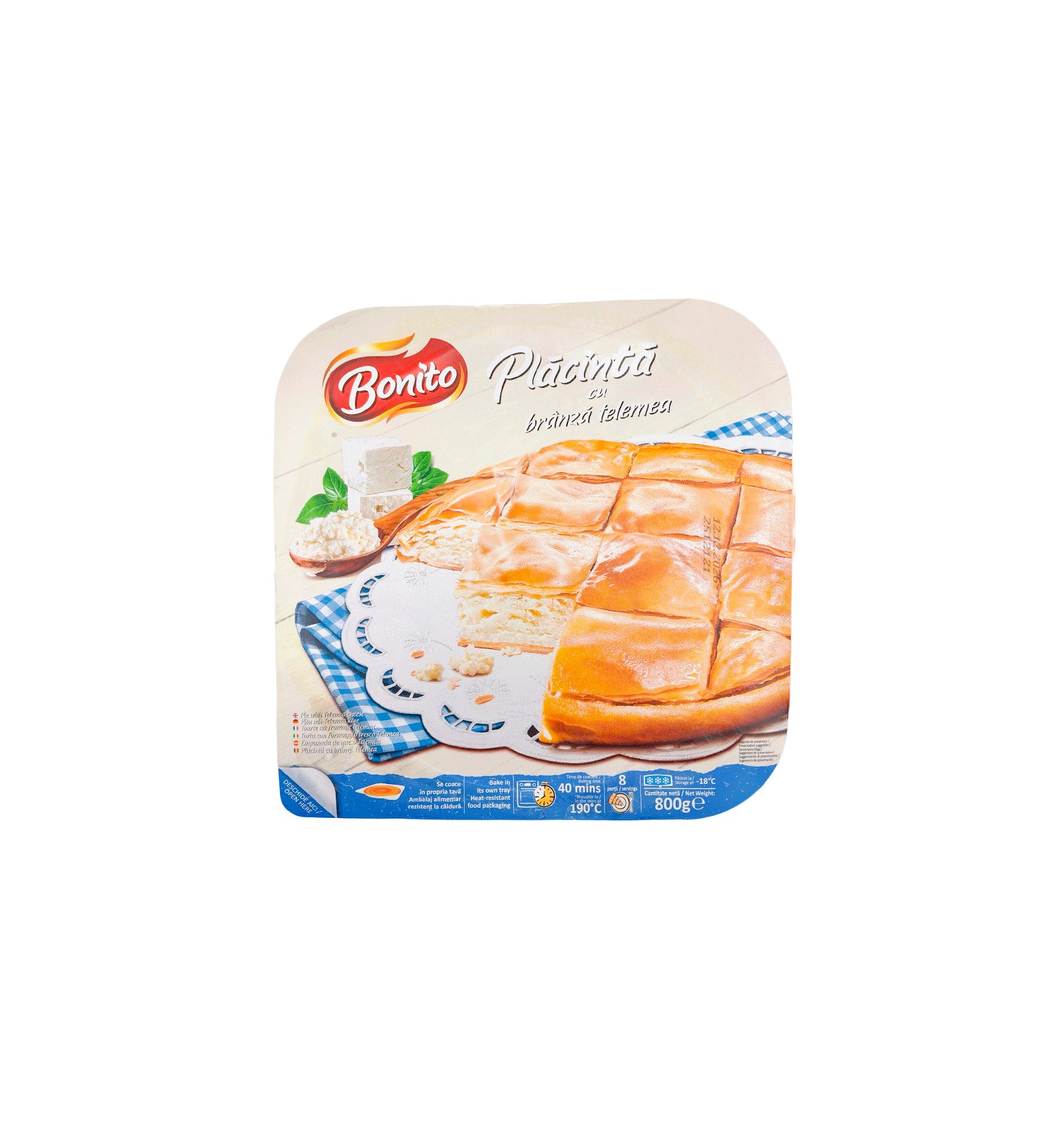 Ingrediente: Aluat [făină albă de grâu, apă, uleiuri vegetale rafinate (ulei de floarea- soarelui, ulei de palmier) - în proporţii variabile, zaharuri: dextroză, sare iodată, emulsifiant: lecitină din soia, agent de tratare a făinii: L-cisteină, enzime: a- şi ẞ-amilază); Umplutură 40% [brânză telemea de vacă 47.6%, apă, griş din grâu, urdă sărată din lapte de vacă 9.5%, amidon modificat din cartofi, fibre de grâu, sare iodată, stabilizator: carboximetilceluloză de sodiu, agent de umezire: glicerină, aromă de brânză). Poate conține urme de ouă, arahide, nuci, seminţe de susan.