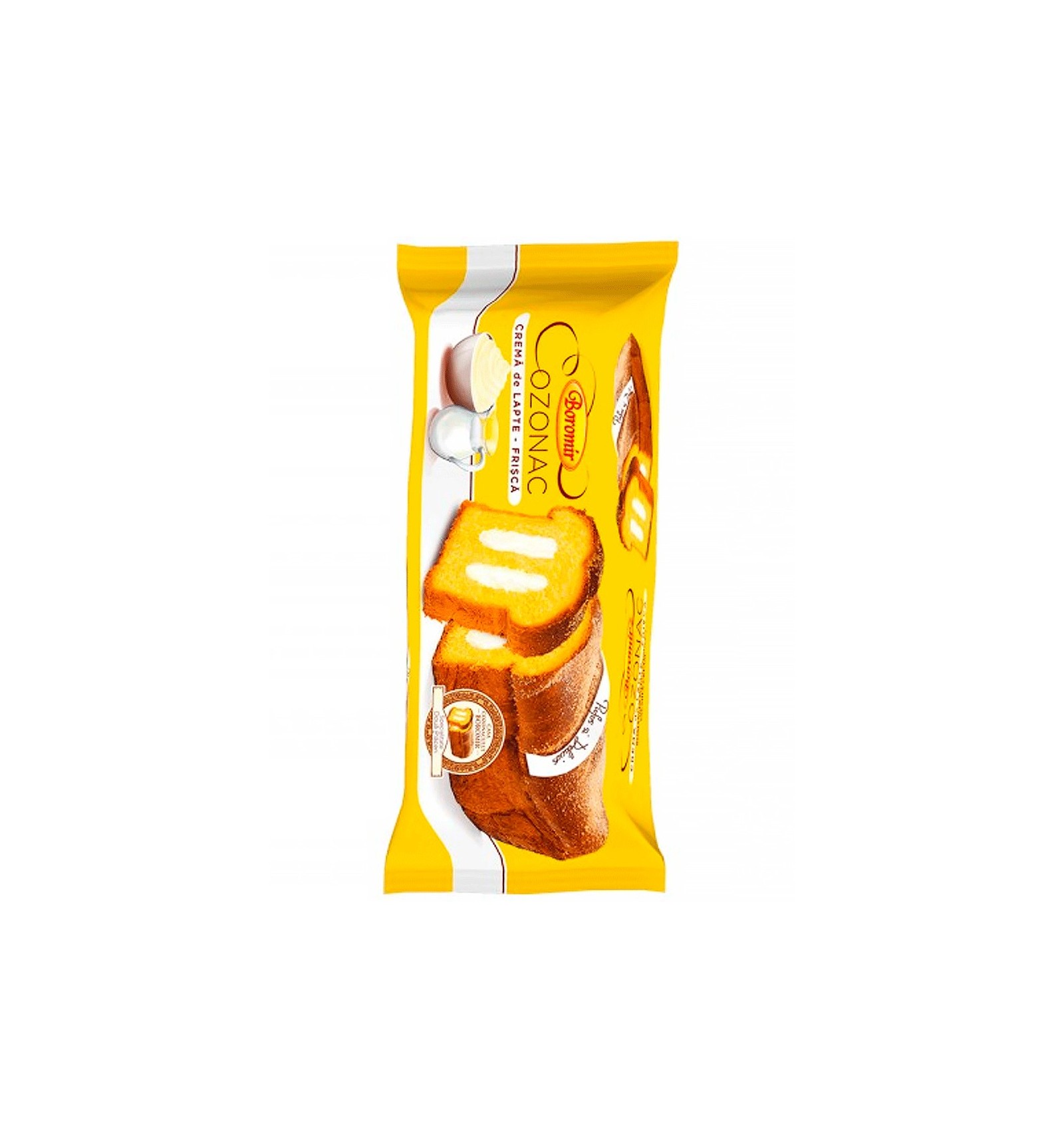 Ingrediente: făină albă de grâu, cremă cu lapte 30% (zahăr, apă, sirop de glucoză, ulei vegetal de palmier, lapte praf degresat 6%, lapte praf integral 4%, arome, sare, stabilizatori: pectină, conservant: sorbat de potasiu, emulsifianți: mono și digliceride ale acizilor grași), uleiuri vegetale (palmier, floarea soarelui, rapiță), apă, drojdie naturală (făină albă de grâu, apă), zahăr, ouă, gălbenuș ou, sirop de zahăr invertit, unt, lapte praf, emulsifianți: mono și digliceride ale acizilor grași și lecitină de soia, drojdie, sare iodată, arome.