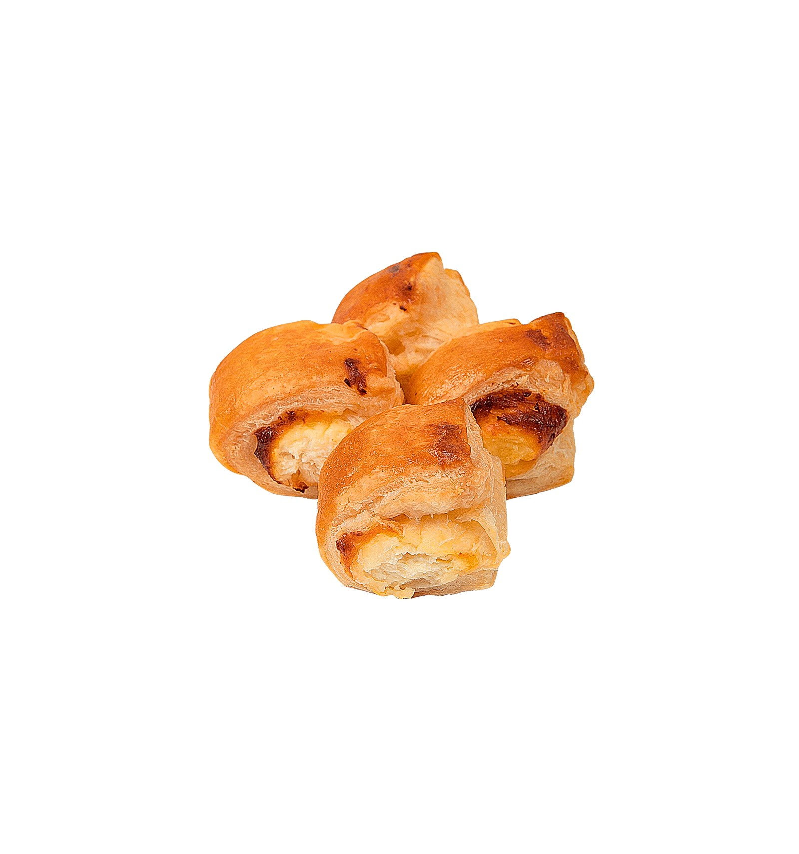 Ingrediente: Aluat (faina alba de grau tip 480, apa, margarina, uleiuri si grasimi vegetale rafinate: palmier, floarea soarelui, rapita, in proportii variate, apa, sare, emulsiflanti: mono si digliceride ale acizilor grasi, lecitina de soia, acidiflant: acid citric, arome, colorant: beta caroten), zahar, gluten din grau, faina de soia, sare iodata, otet din alcohol, arome, amulsifant: E481, E472e, enzime, antioxidanti: acid ascorbic. Umplutura 28% (urda din lapte de vaca 39%, branza telemea de vaca 23%, apa, fulgi cartofi-contin sulfiti, amidon din porumb, sare iodata, agent de umezire: glicerina, aroma). Poate contine urme de fructe cu coaja lemnoasa, arahide, seminte de susan, oua.