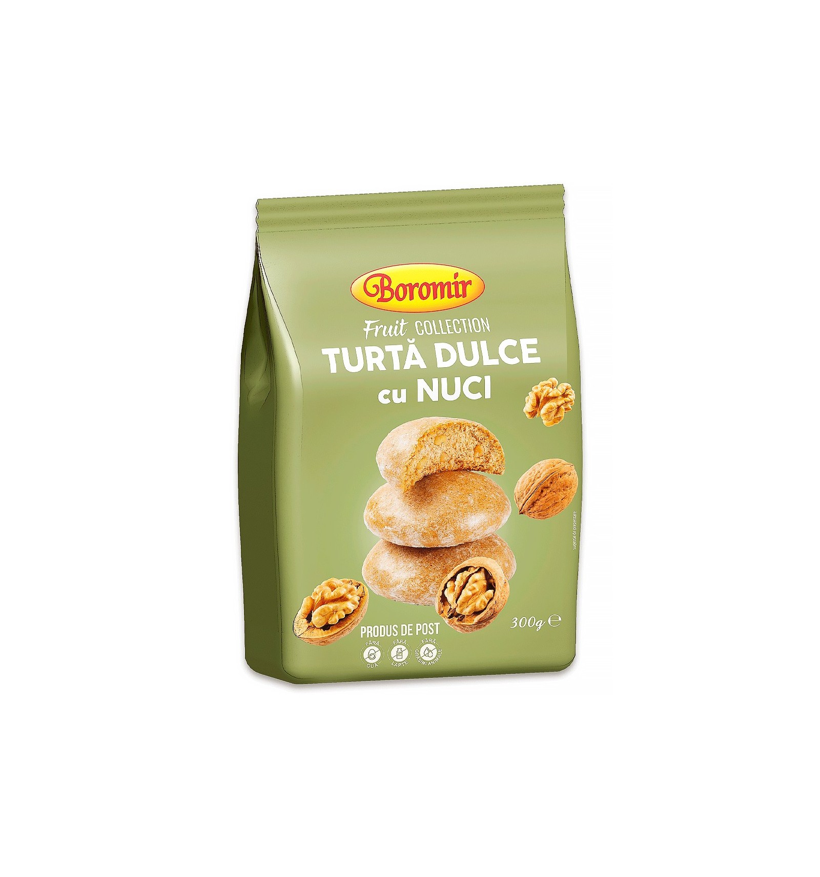 Ingrediente: Făină de grâu, sirop de glucoză-fructoză, zahăr, agent umectant: sorbitol, grăsimi vegetale nehidrogenate: floarea soarelui, miez nuca 4%, agent de afânare: bicarbonat de sodiu, dextrine, amidon din cartofi, sirop caramel, sare iodată, arome, acidifiant, acid citric.