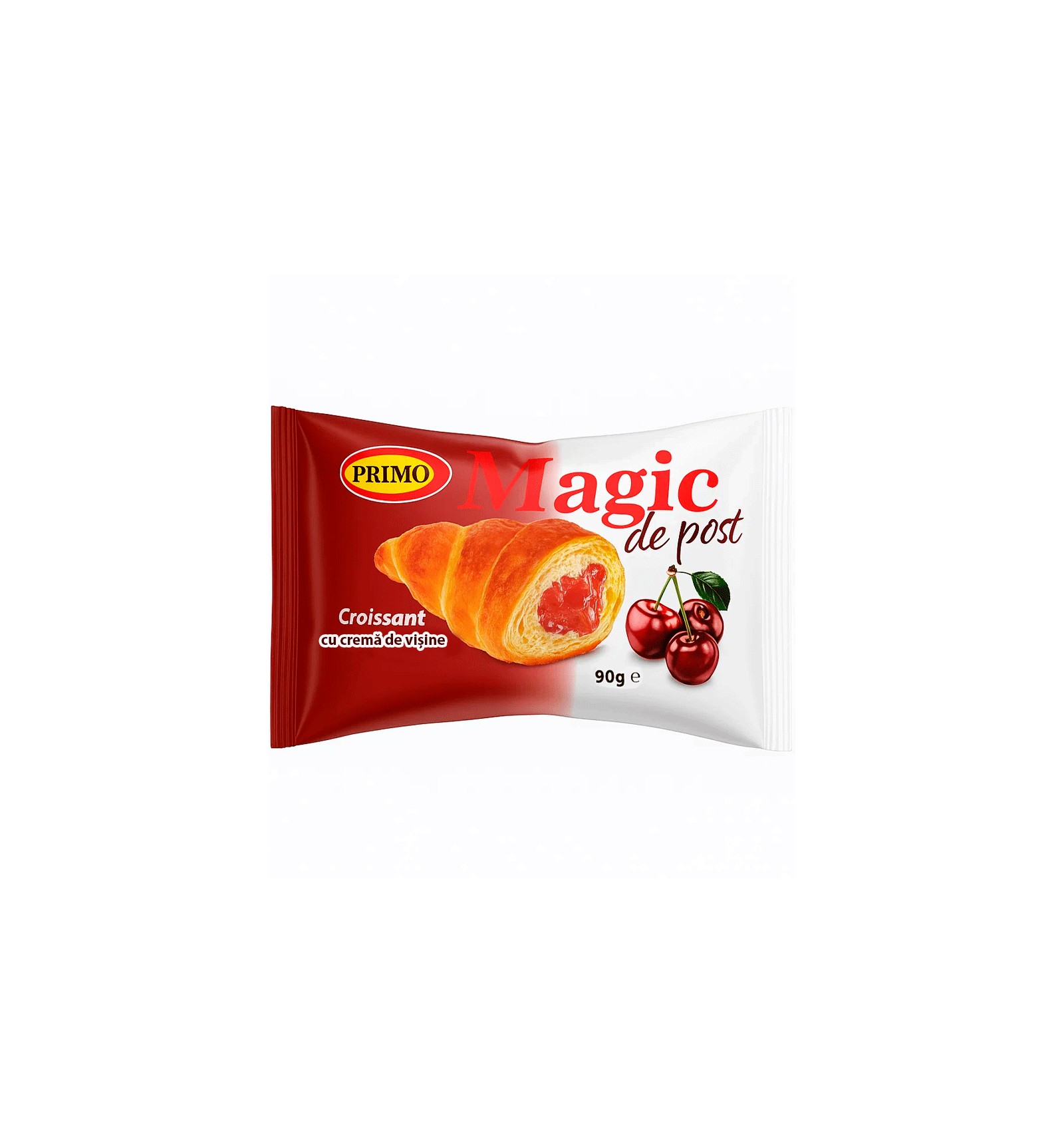 Ingrediente: Făină de GRÂU, pastă de vișine 20% (zahăr, piure de vișine 35%, sirop de glucoză, pectină, acidifiant (acid citric), conservant (sorbati de potasiu), aromă), zahăr, apă, margarină (uleiuri vegetale (palmier, floarea-soarelui/rapiță) și uleiuri vegetale parțial hidrogenate (palmier)), sirop de glucoză, dextroză, drojdie, sare (0,5%), emulgator (mono și digliceride ale acizilor grași), conservant (propionat de calciu 0,1%), premix, E481 (palmier), arome, antiaglomerant E170 carbonat de calciu, colorant E160a carotenoide, antioxidant: E300 acid ascorbic, enzime. Conține: GLUTEN.
