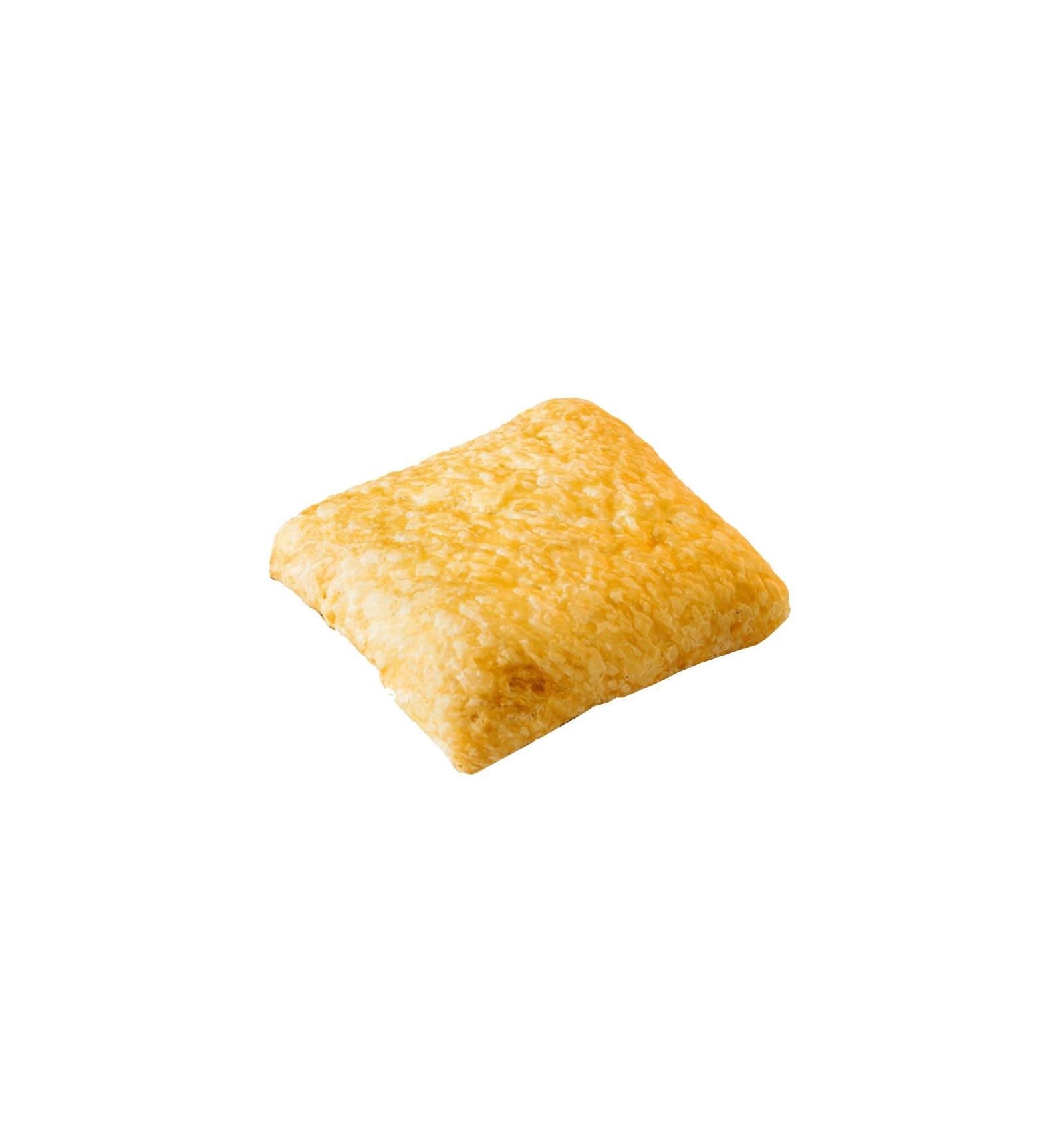 Ingrediente: aluat: faina alba 550 de grau, margarina [uleiuri vegetale (palmier, floarea soarelui, rapita), apa, emulsifianti (mono si digliceride ale acizilor grasi, esteri poliglicerici ai acizilor grasi, lecitina din soia), sare, conservant (acid sorbic), acidifiant (acid citric), aroma, colorant (caroteni)], apa, zahar, maia (faina alba 50 din grau, faina alba 1050 din grau, culturi starter), faina de malt din orz, amestec luciu patiserie [apa, zahar, stabilizator (izomalt), sirop de glucoza, agent gelatizant, (agar), acidifiant (acid citric), conservant (sorbat de potasiu), sare iodata, otet din alcohol etilic, umplutura: umplutura 12% branza telemea din lapte, apa, 4% mix pentru umpluura cu branza [amidon modificat (porumb, cartofi), 20% ulei vegetal de palmier, 20% produse din lapte (zer praf, lapte praf degresat, proteine din lapte), sirop de glucoza, 3% branza pudra, emulsifiant (fosfat de sodiu), albusuri de oua pudra, proteína hidrolizata vegetala din soia, sare, amidon din grau, arome, stabilizator (guma de guar), corector de aciditate (acid lactic, lactat de calciu), condimente]. Poate contine urme de lapte, oua, seminte de Susan.