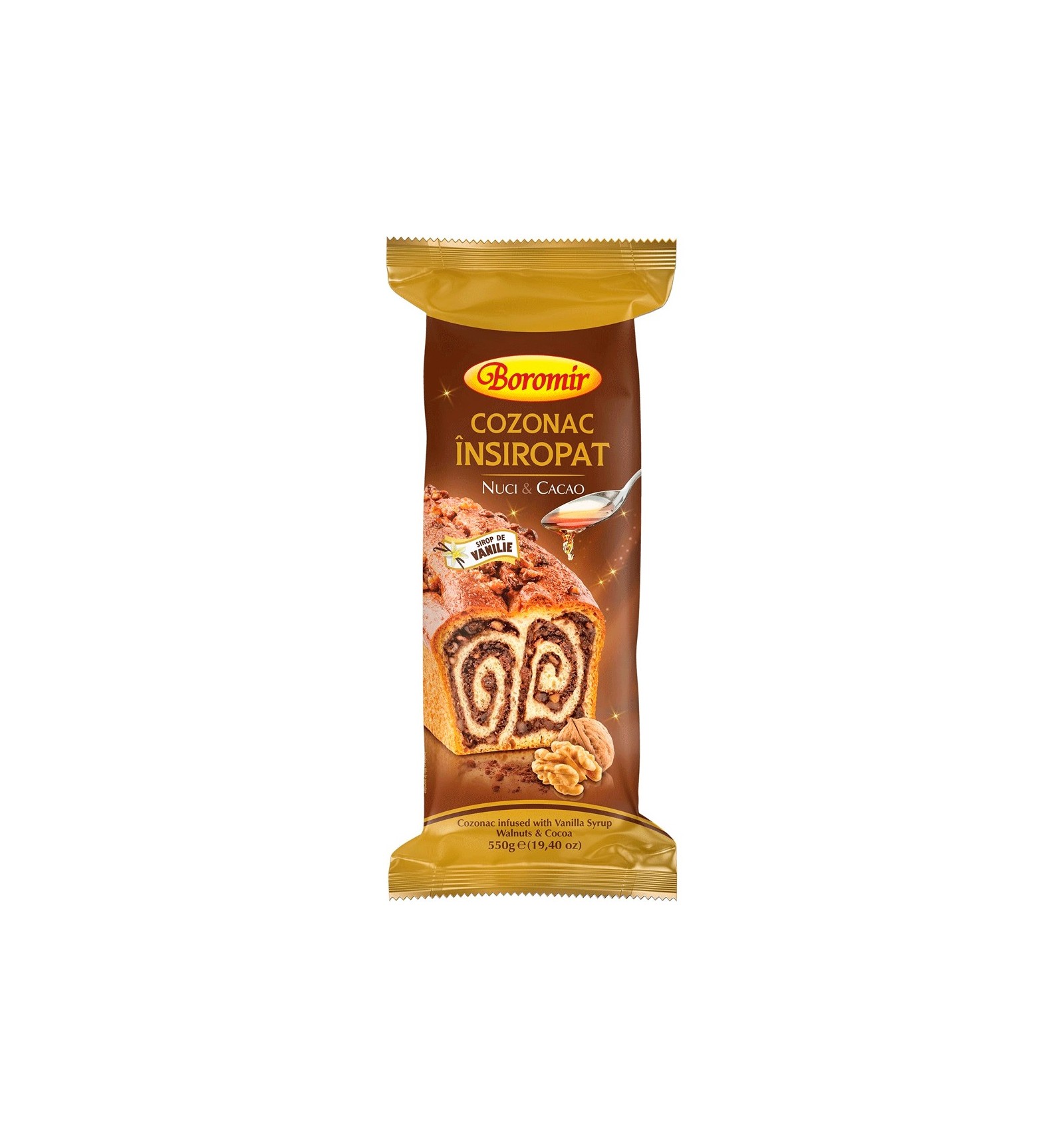 Ingrediente: făină albă de grâu, sirop de vanilie 14 % ( apă, zahăr, alcool etilic, acidifiant: acid citric, aromă naturală de vanilie 1,5 %), zahăr, nucă 9%, albuș de ou, drojdie naturală (făină albă de grâu, apă), uleiuri vegetale (palmier, floarea soarelui, rapiță), gălbenuș de ou, apă, unt, sirop de zahăr invertit, emulsifianți: mono și digliceride ale acizilor grași și lecitină de soia, lapte praf, cacao pudra degresată 0,7%, alcool etilic, drojdie, sare iodata, arome.