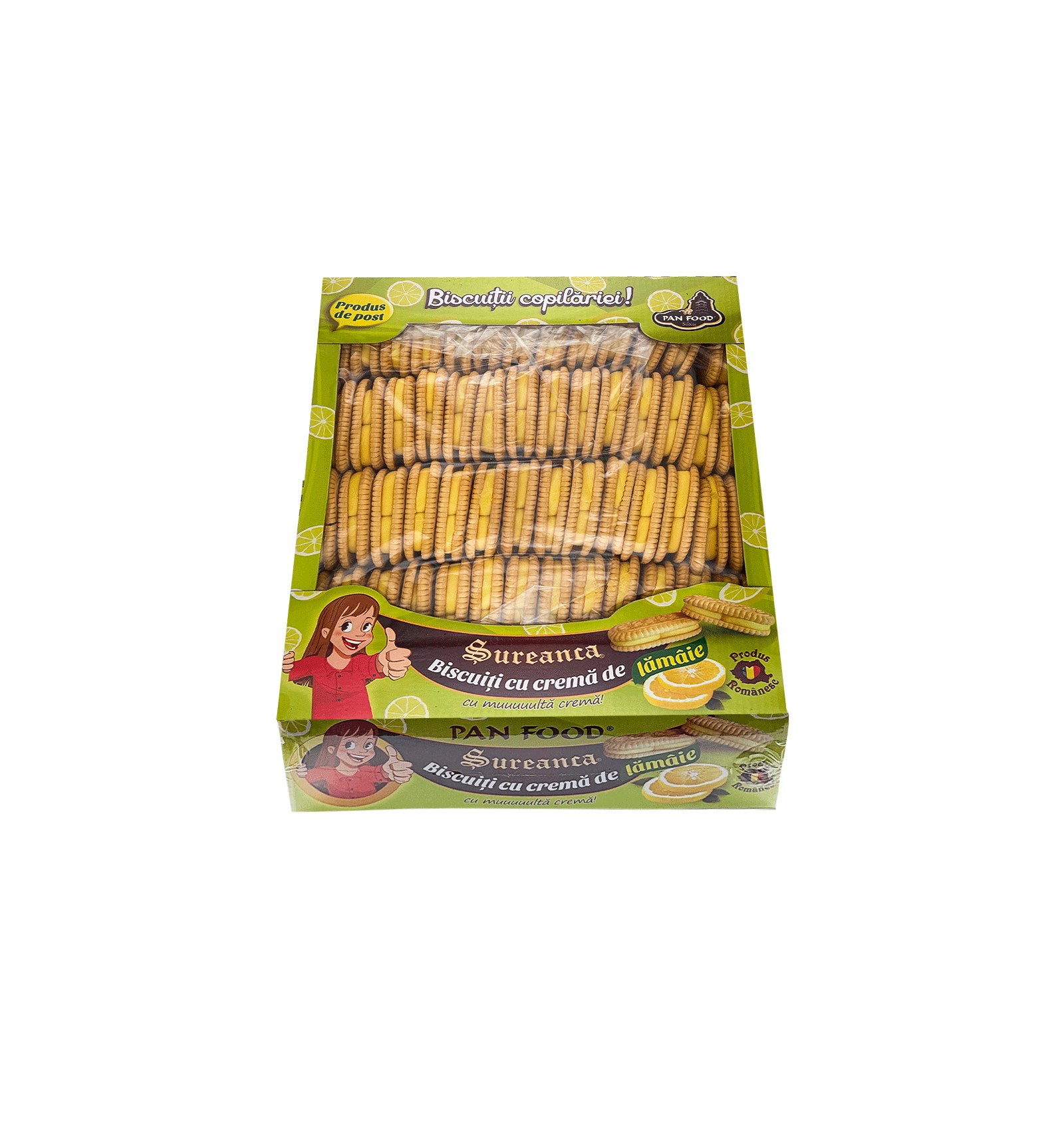 Ingrediente: Faina de grau, zahar, grasime vegetala de palmier, preparat lamaie (suc de lamaie 2%, arome naturale, ulei de rapita, colorant: luteina), emulsifiant: lecitina din soia, sirop de glucoza, acidifiant: acid citric, aroma, sare, agenti de afanare: bicarbonat de sodiu, bicarbonat de amoniu; conservant: metabisulfit de sodiu, sorbat de potasiu.
