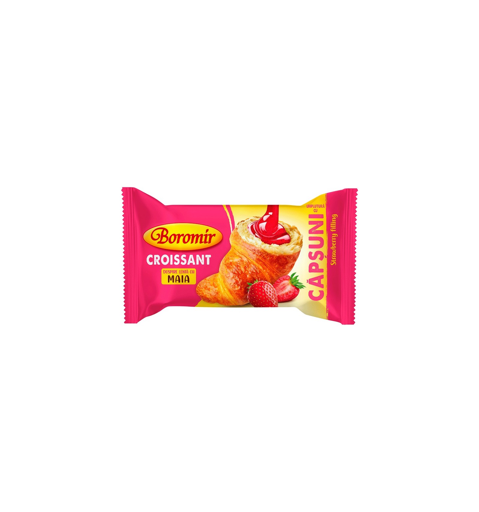 Ingrediente: făină albă de grâu, umplutură cu căpșuni 25 % (sirop de glucoză-fructoză, piure de căpșuni 35 %, zahăr, agent gelatinizant: pectina, acidifiant: acid citric, conservant: sorbat de potasiu, concentrat de morcov negru, arome, colorant: extract de paprika), uleiuri vegetale (palmier, floarea-soarelui, rapiţă), maia / drojdie naturală 15 % (făină de grâu, apă), ouă, zahăr, sirop de glucoză, apă, emulsifianţi: mono și digliceride ale acizilor grași, esteri poliglicerici ai acizilor grași și lecitină de soia, lapte praf integral, miere, unt, drojdie, sare iodată, făină din malţ de grâu, arome, acidifiant: acid citric. Produsul poate conţine urme de: nuci, alune, muștar.