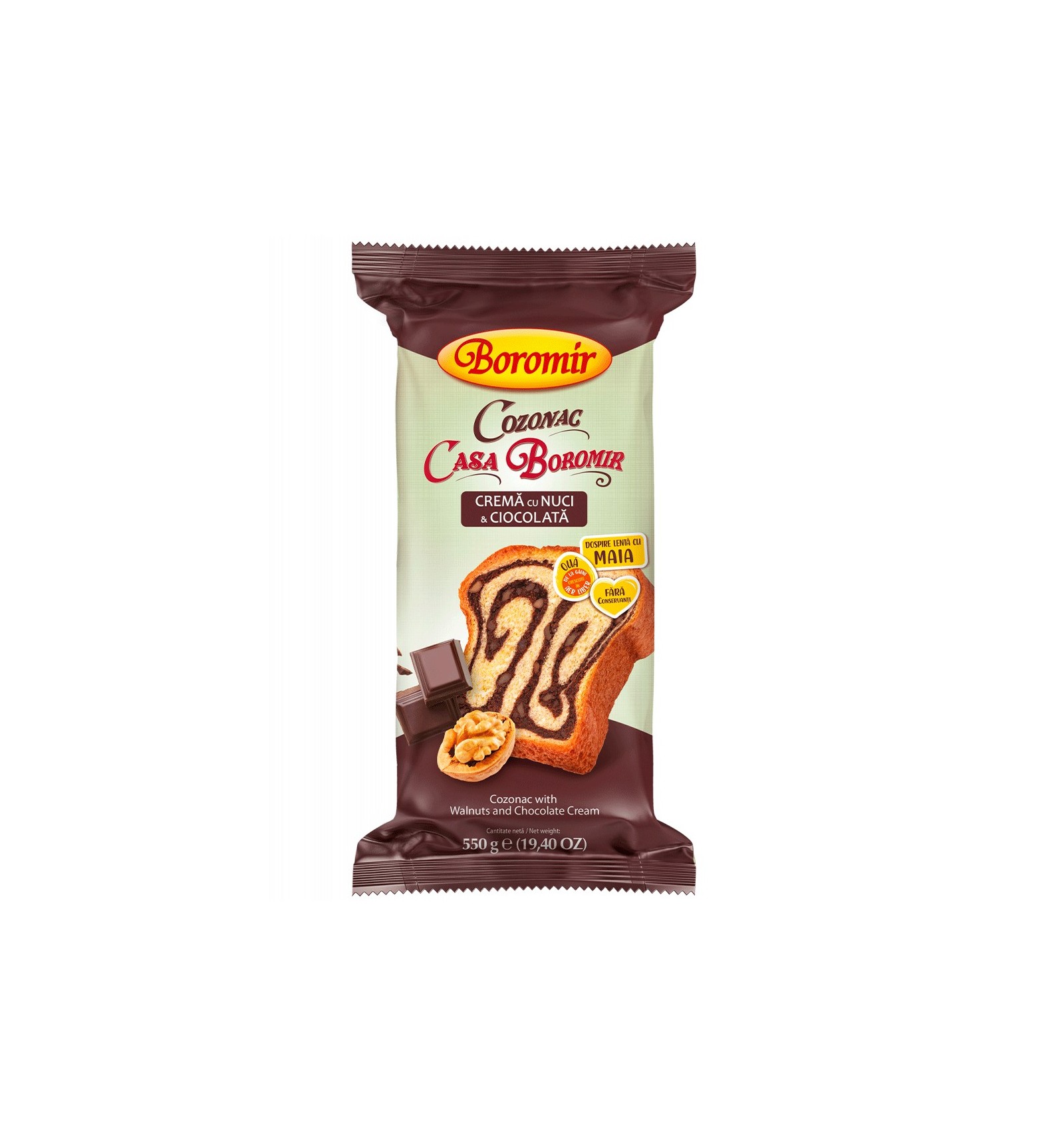 Ingrediente: făină albă de grâu, zahăr, cipsuri ciocolată 7% (masă de cacao, zahăr, unt de cacao, emulsifiant: lecitină de floarea soarelui), albuș de ou, drojdie naturală (făină albă de grâu, apă), nucă 6%, uleiuri vegetale (palmier, floarea soarelui, rapiță), gălbenuș de ou, apă, unt, sirop de zahăr invertit, emulsifianți: mono și digliceride ale acizilor grași și lecitină de soia, lapte praf degresat, cacao pudră degresată, alcool etilic, drojdie, sare iodată, arome.