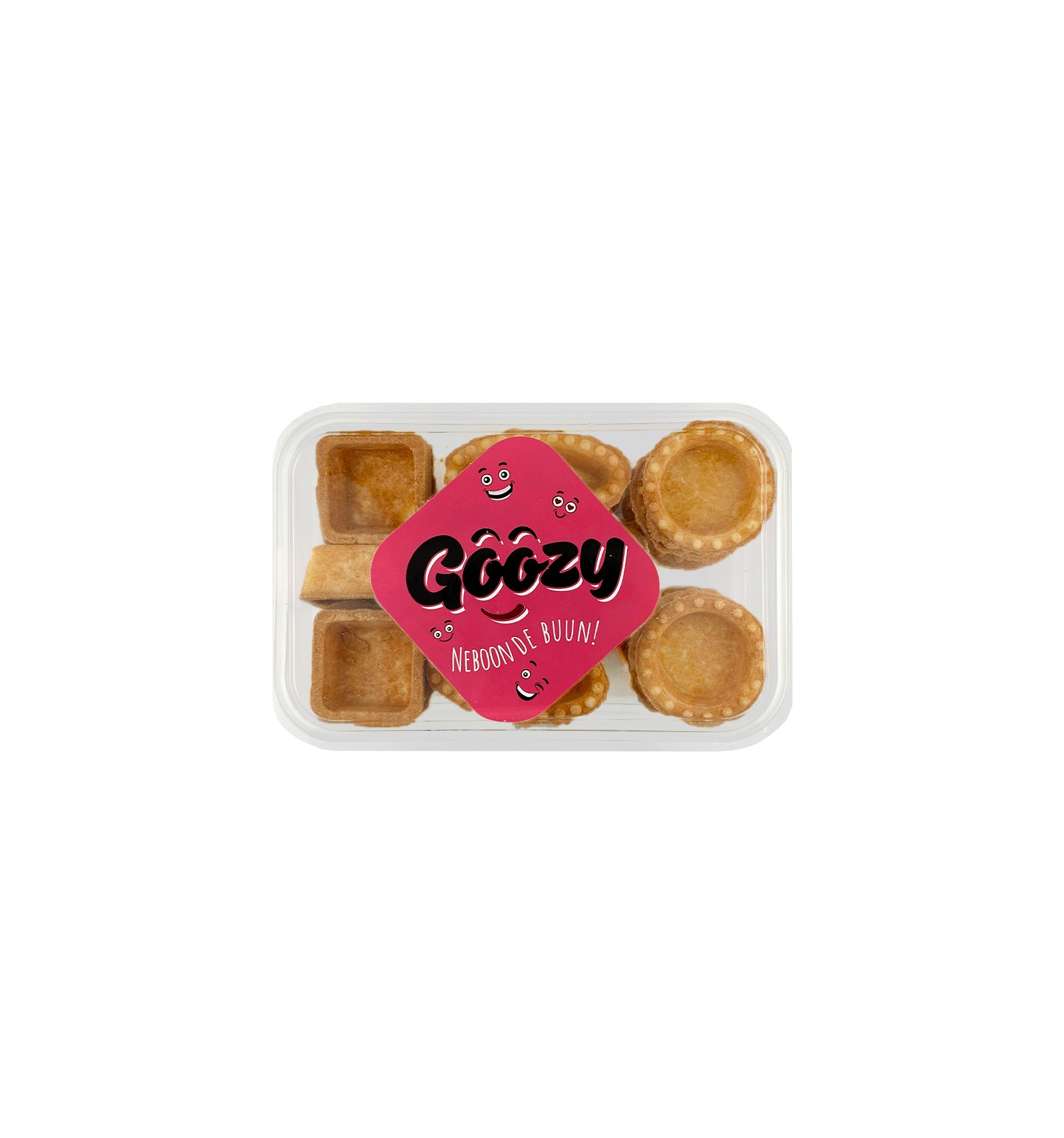 Ingrediente: Făină de GRÂU, margarină vegetală 80 % (uleiuri vegetale: palmier, floarea soarelui, rapiță în proporții variabile, apă, emulgator: mono și digliceride de acizi grași, sare 0,2 %, conservant: acid sorbic (E200), aromă, acidulant: acid citric (E330)), OUĂ, unt (smântână dulce pasteurizată), LAPTE 3,5 % (lapte de vacă standardizat, omogenizat și ultrapasteurizat), făină de orez, sirop invertit, zahăr, sare, agent de afânare (amidon de grâu, pirofosfat acid de sodiu (E450), bicarbonat sodic (E500)). Produsul conține GLUTEN, OUĂ, LAPTE și derivați. Poate conține urme de SOIA și FRUCTE USCATE.
