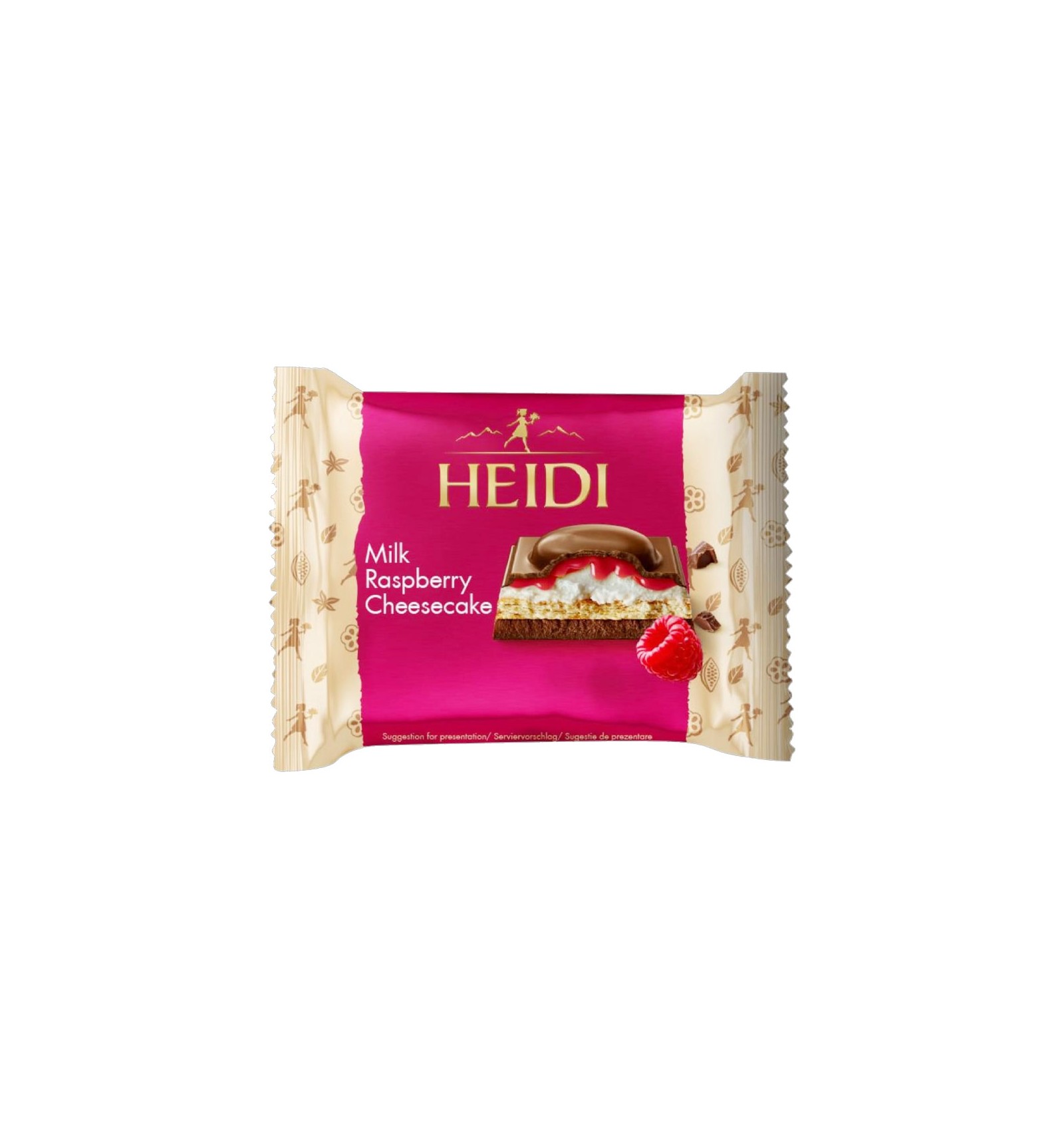 Ingrediente: ciocolată cu LAPTE 50% (zahăr, LAPTE integral praf, masă de cacao, unt de cacao, LAPTE praf degresat, grăsime vegetală (palmier, shea), emulgator: lecitine (SOIA), aromă); biscuiți 14% (făină de GRÂU, zahăr, unt (LAPTE), sirop de zahăr invertit, sare, agenți de afânare: bicarbonat de sodiu, bicarbonat de amoniu; aromă); zahăr, grăsime vegetală (palmier), sirop de glucoză, zer pudră (din LAPTE), LAPTE praf degresat, agent umectant: glicerol; unt (LAPTE), pastă de ALUNE DE PĂDURE 0,1%, pudră de brânză (LAPTE) 0,1%, sirop de zahăr invertit, emulgator: lecitină din SOIA; agent gelifiant: pectine; corector de aciditate: acid citric, acid tartric; suc concentrat de zmeură 0,1%, suc concentrat (morcov și coacăze negre), arome. Conține și alte grăsimi vegetale în afară de untul de cacao. Substanță uscată de cacao în ciocolata cu LAPTE: minimum 25%. POATE CONȚINE URME DE ARAIDE ȘI ALTE FRUCTE CU COAJĂ.