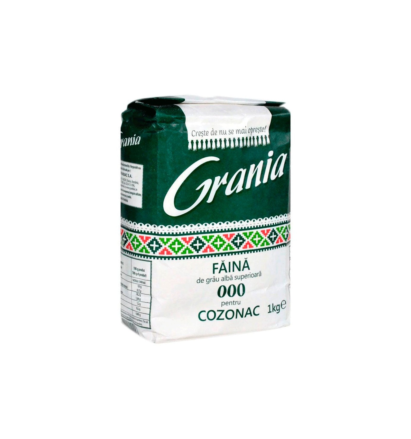 Ingrediente: Faina de grau alba superioara 000. Produs obtinut prin macinarea graului. Alergeni: Grau.
