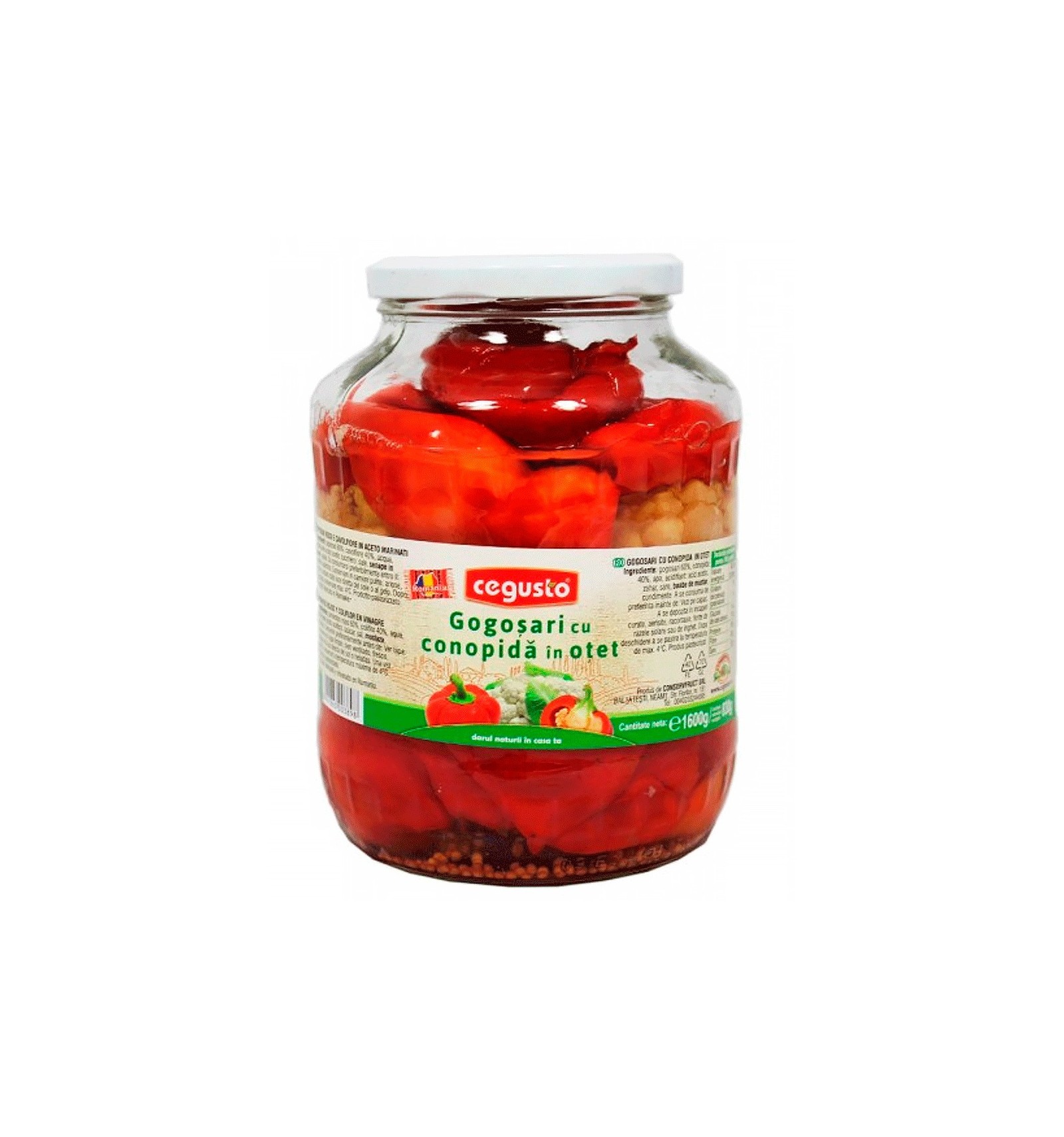 Ingrediente: gogosari 31%, conopida 20%, acid acetic diluat, zahar, sare neiodata, boabe de mustar, condimente.