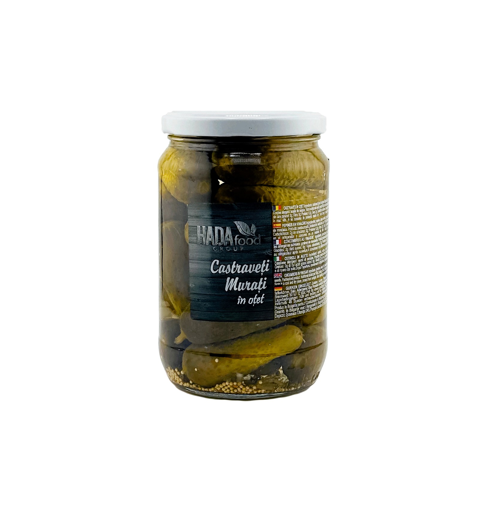 Ingrediente: castraveti, apa, marar, boabe de mustar, zahar, regulator de aciditate: acid acetic E260, ceapa, piper negru, sare. Contine alergeni: boabe de mustar.