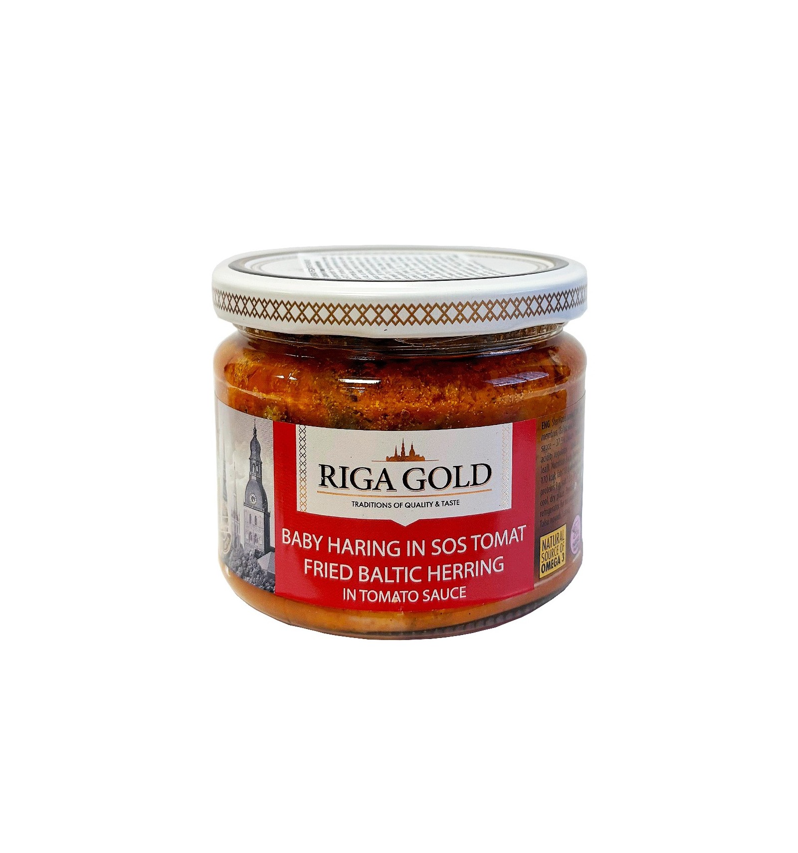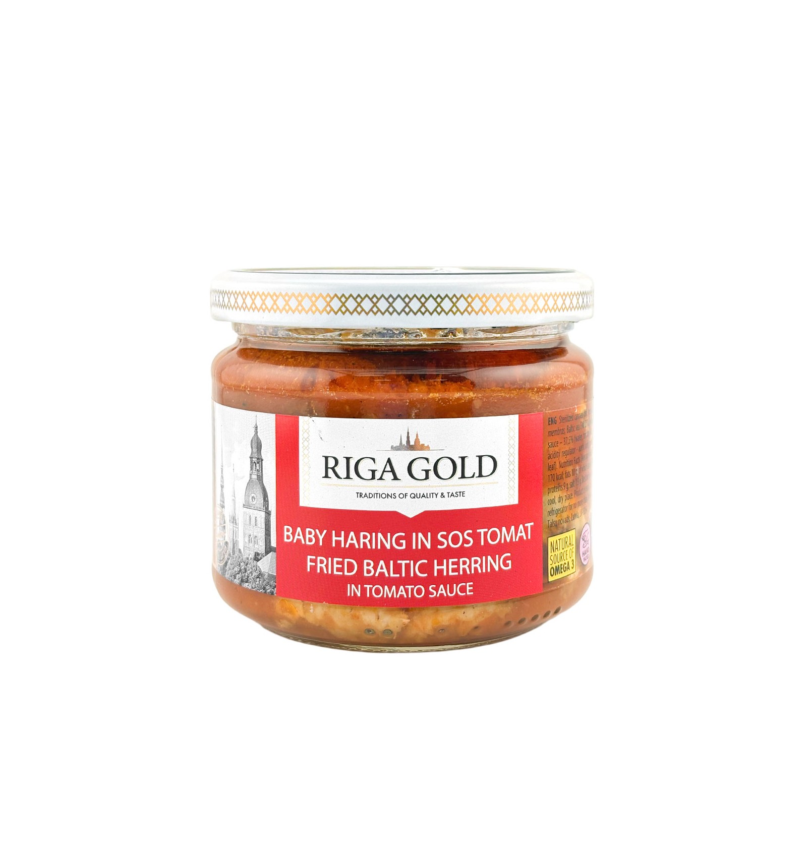 Ingrediente: file de hering 60%, sos de roșii 40% (pastă de roșii, apă, zahăr, ulei de rapiță, sare, ceapă, condimente, acidifiant: acid acetic, agent de îngroșare: gumă guar).