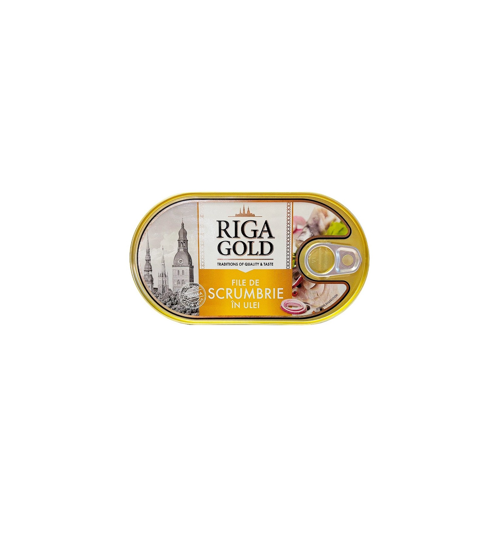 Ingrediente: File de macrou 68%, ulei de rapiță 31%, sare, frunze de dafin, boabe de piper negru.