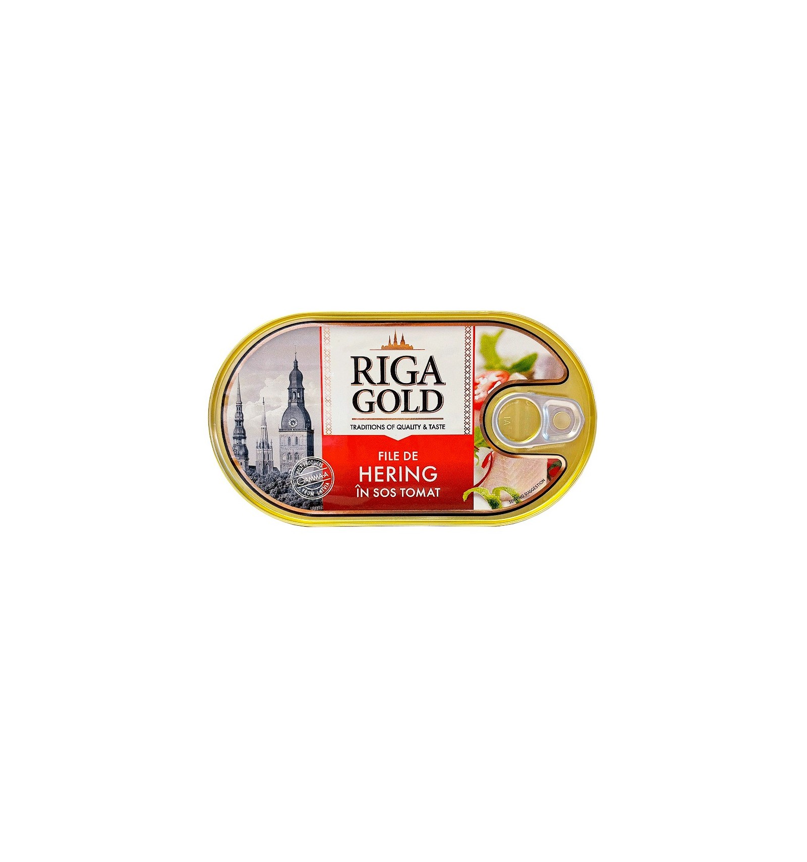 Ingrediente: Fileuri de hering 60%, sos de roșii 40% (pastă de roșii, apă, zahăr, ulei de rapiță, sare, ceapă, condimente, acidifiant: acid acetic, agent de îngroșare: gumă de guar). Alergeni: conține pește. Poate conține urme de gluten, muștar, soia și lapte.