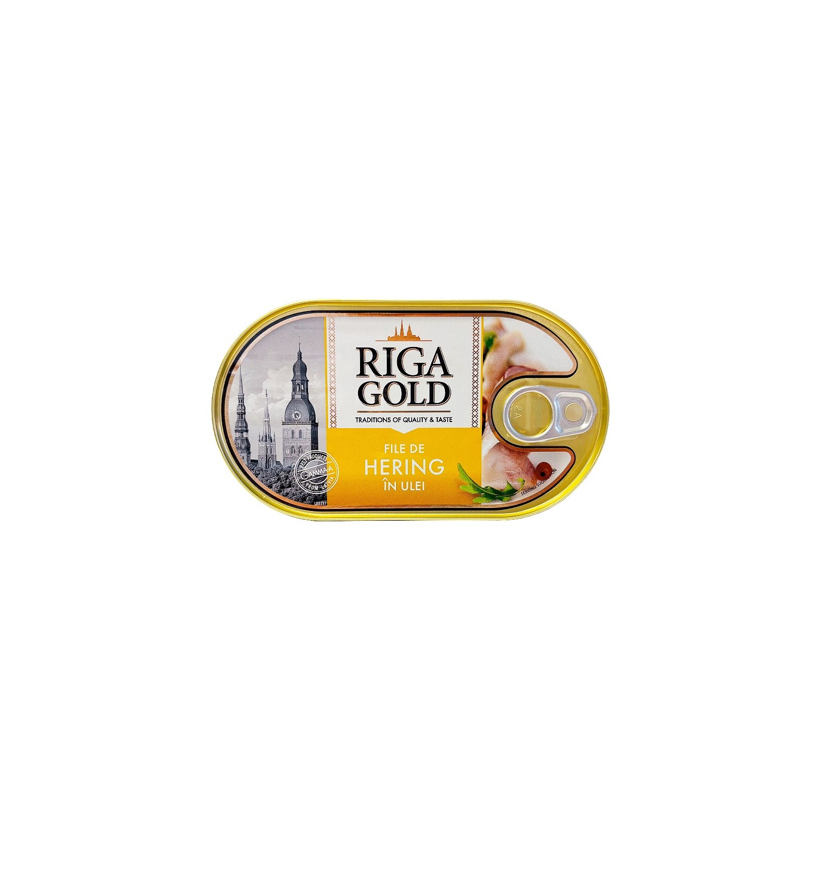 Ingrediente: Fileuri de hering 68%, ulei de rapiță 31%, sare, ienibahar, frunze de dafin. Alergeni: conține pește.