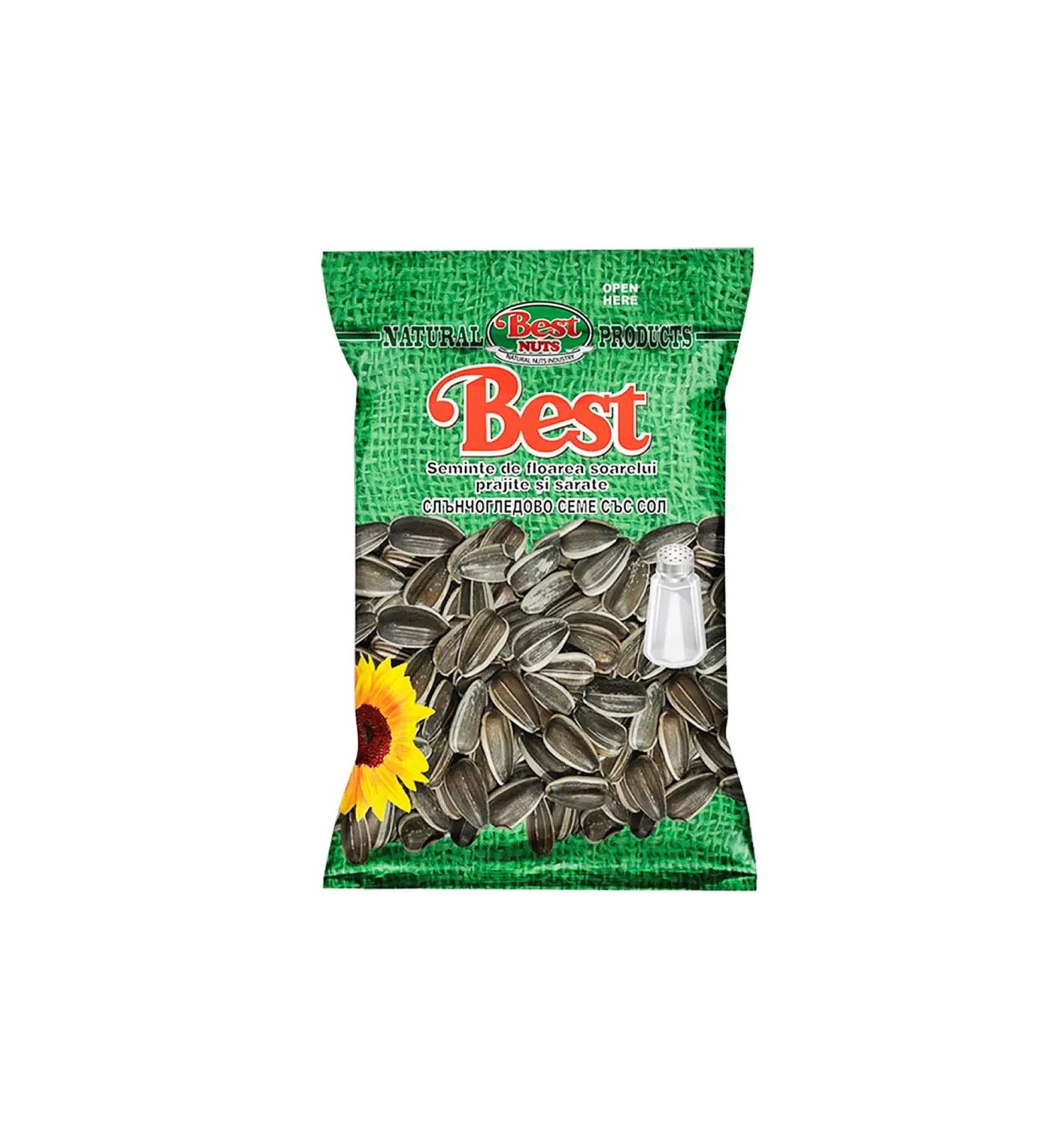 Ingrediente: Semințe de floarea-soarelui, făină de grâu (gluten), sare iodată 5.2%. Poate conține urme de arahide.